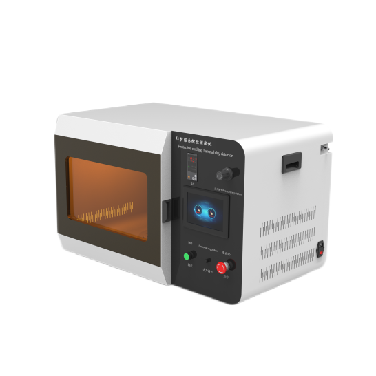 防護服可燃(rán)性測試儀(yí),用於測定紡織品續燃、陰(yīn)燃及炭化的傾向。適用(yòng)於阻燃的機織物、針織物、塗層產品等阻燃性能的(de)測定。執行標準GB19082-2023